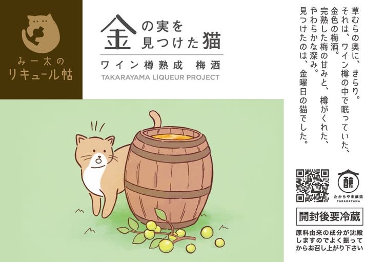 【超早割】金曜日のワイン樽熟成梅酒「金の実を見つけた猫」500ml×1本
