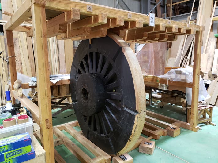現在、鷹山を支えている直径約2メートルの車輪もそのひとつであり、譲り受けた時点で既に100年以上使われていた歴史ある部材です。