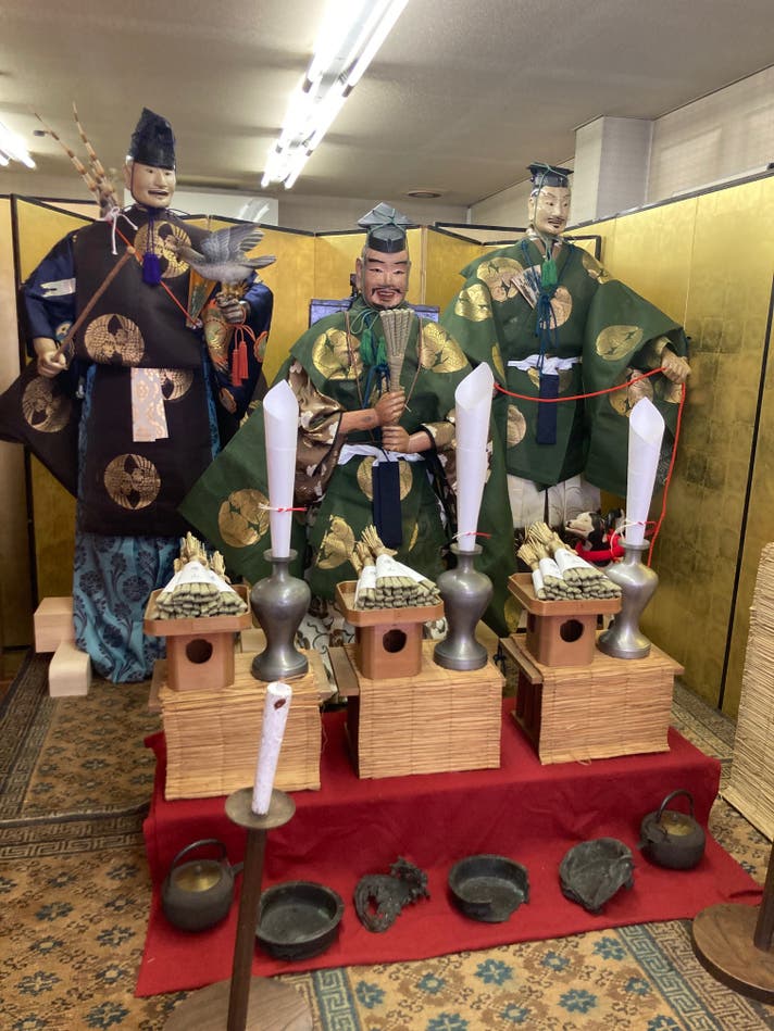 御神体は、平安時代の歌人・在原行平が光孝天皇の御幸で鷹狩りをする場面を表現した「鷹匠(たかじょう)」「犬飼(いぬかい)」「樽負(たるおい)」の三体です 。かつては「鷹つかひ山」と呼ばれ、その優美な姿は京の人々に深く愛されてきました 。
