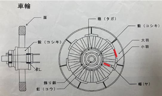 大羽(おおば)は車輪の中心軸であり、全ての輻(や)を束ねて巨大な車体を支える最重要パーツです。新調した車輪の「大羽」に、ご支援の証として、内側にお名前を刻印させていただきます。