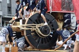 - 現車輪は他山鉾の退役部材を使用。10トンの重圧と6回の辻回しに耐えるために、車輪を新調