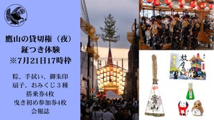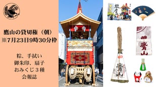 祇園祭の熱気が高まる7月21日から23日の3日間、まだ街が静寂に包まれる早朝の時間帯に、鷹山を貸切できる権利です。鷹山の保存会理事が随行し、山の見どころや伝統文化について丁寧にご案内いたします。