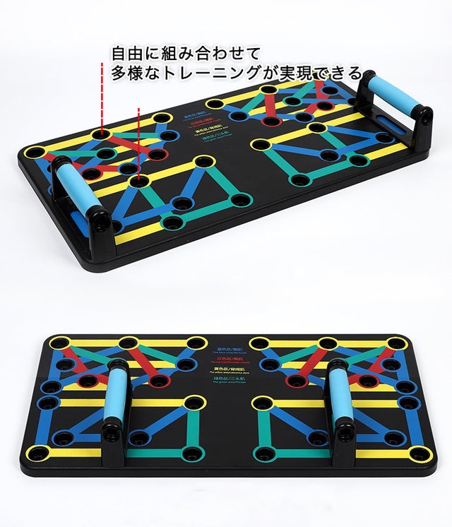 - 腕や足の筋肉だけではなく、胸筋や腹筋など様々な部位のトレーニングが可能。