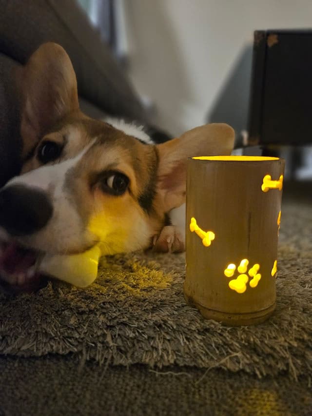 肉球デザインの竹灯籠「竹あかり」を1点