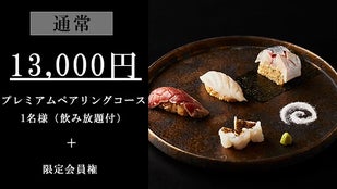 鮨のネタを増やし、超希少酒とのペアリング、その他飲み放題も付いてくるコース。