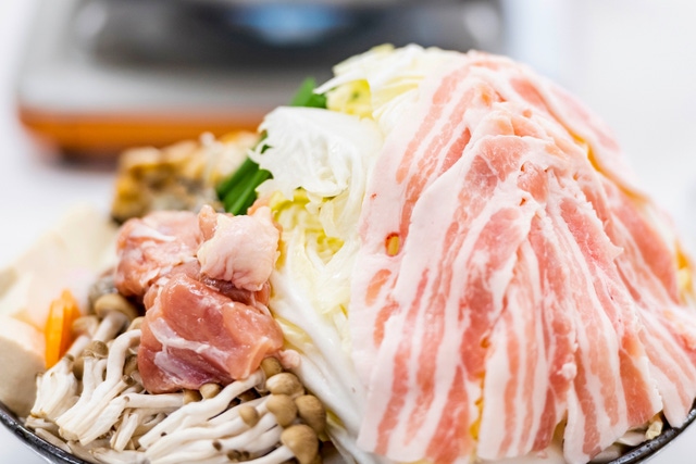 ・豚肉、鳥肉、タラ入魔法の鍋