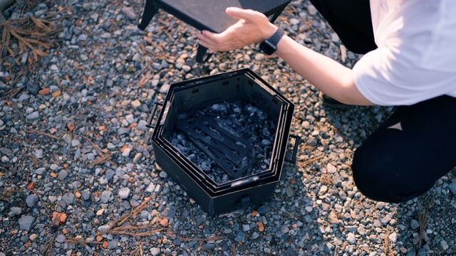 - 焚き火や炭火、調理、火消し、木炭やツールの保管までを詰め込んだオールインワン焚き火台