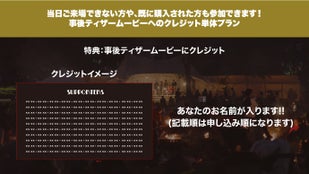 すでにチケットを購入されてしまった方や、当日行けない人もご協力いただける事後ティザームービーへのクレジット単体プランもご用意しました。