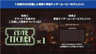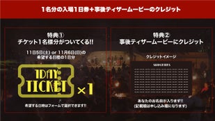 1名分の入場1日券+事後ティザームービーのクレジット
