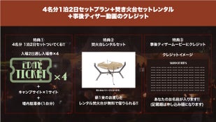 4名分1泊2日セットプラン+焚き火台セットレンタル+事後ティザー動画のクレジット