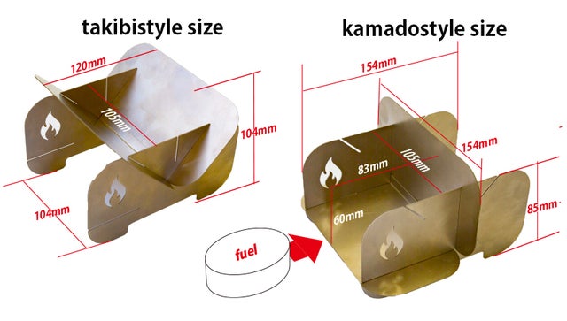 [kamadostyleカマドスタイル]は、固形燃料や小型のアルコールストーブの使用に適した形態。なんていっても重量180g以下ですから、トレッカーにもおすすめです。絶景を眺めながら炊きたてご飯を楽しむなんてこともできます。
