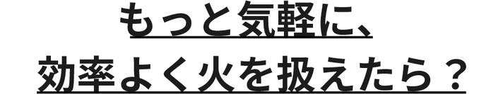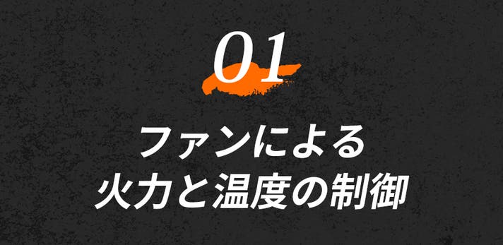 ファンダイヤルを回すだけで、炎の勢いをコントロール。調理内容に応じて火加減を調整することができます。