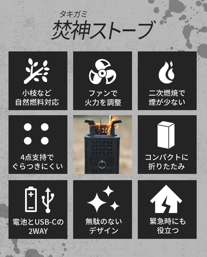 「Makuake(マクアケ)」は、実行者の想いを応援購入によって実現するアタラシイものやサービスのプラットフォームです。このページは、 プロダクトカテゴリの 「自然燃料×送風ファンの力 短時間に高火力を実現【焚神(タキガミ)ストーブ】」プロジェクト詳細ページです。