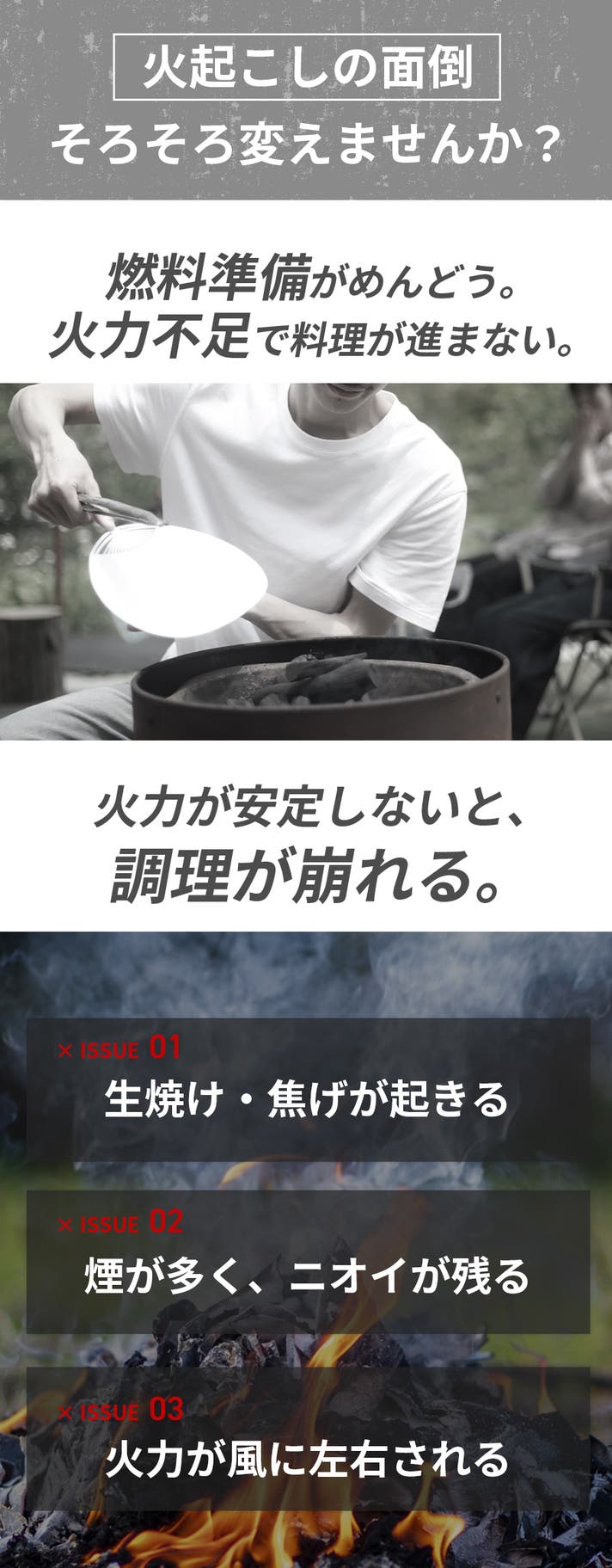- 新設計で空気の流れを大幅改善。少ない燃料で素早く高温!アウトドアで調理時短を実現!