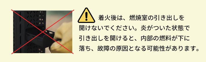 A. 点火自体は可能ですが、ファンが作動しないため、本来の性能(高火力・煙の少なさ)は発揮されません。