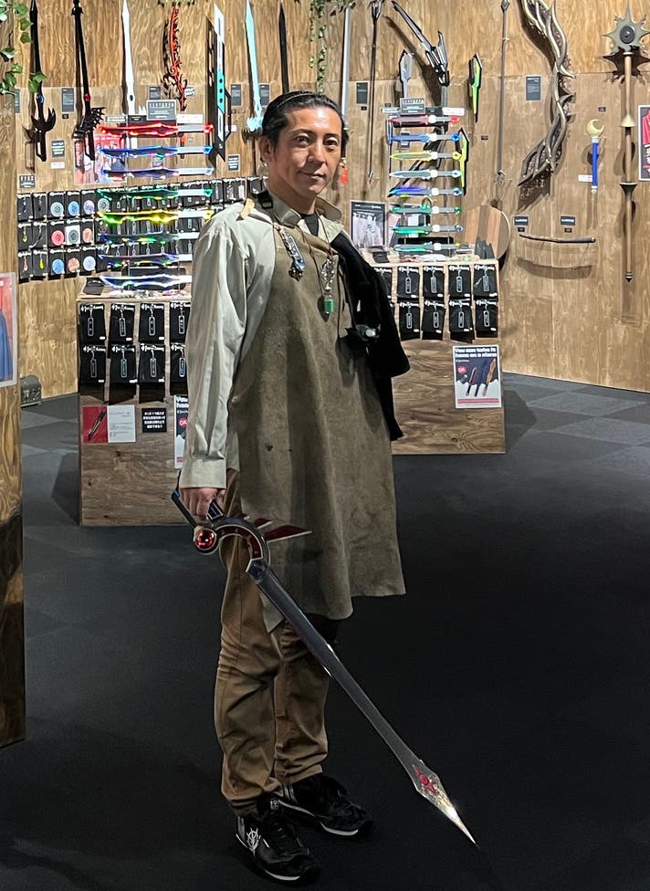 20代に病気で長期入院から「限りある人生に後悔なく挑戦を」との思いが背中を押し30歳で創業。1,000万円の借金をしてNCルーター加工機を創業と同時に導入。顧客の高度な要望に応えたい思いからだった。看板やディスプレイケースを手がけたものの、厳しい現実が待っていた。借金返済のための受注に駆けずり回り、頭の中は常に金策でいっぱい。あくせく働く日々に夜も眠れず「何のために生きているんだ」と廃業を考えるまでに追い詰められた。そんな折、足を運んだコスプレイベント。参加者の生き生きとした表情に、ガンダムのプラモデルとドラゴンクエストのゲームに夢中になった幼い頃の、わくわくした胸の高鳴りがよみがえった。次回のイベントに細部まで工夫をこらした自作の剣を持参。賞賛の声に心が震えた「自分の作ったもので人が笑顔になれる」ものづくりの道を志した原点を思い出し、想像の物を現実世界で形にした「ファンタジー武器屋」に情熱を注ぐ。2017年、胃がんの手術を受けた。再び廃業が頭をよぎった。大きな目標は宿泊型リアルRPGのテーマパークを作り、ドキドキとワクワクを届けたいと思っています。
