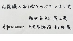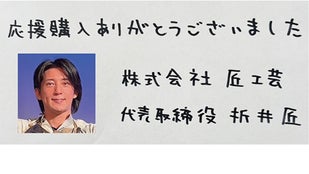 匠工芸代表取締役 折井 匠から直筆のお礼の手紙【写真付き】