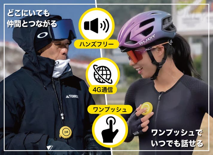 スポーツシーンやビジネスシーンでの連絡や、離れた場所にいる家族や友人との通話など、ワンプッシュ操作で会話をつなげます。