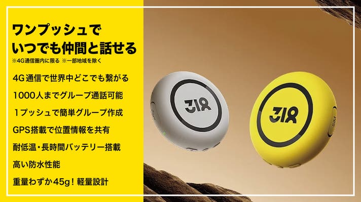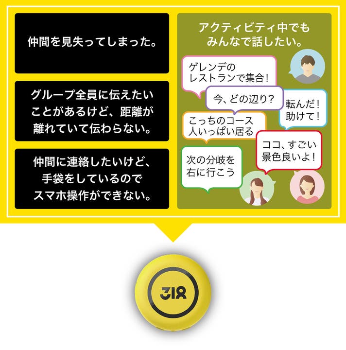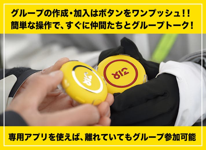 318 Talkie Tagは側面全体がボタンとなっており、押しやすい設計。押しながら話をするだけでグループ通話ができるので仲間とつながる。専用アプリを使えば、GPS機能で仲間の位置情報も把握可能。