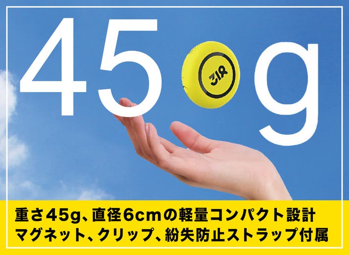 重さ45g、直径6cm、厚さ1.65cmのコンパクト設計で、負担のない装着感を提供。