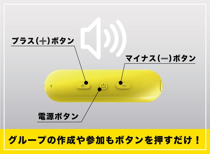 グループ加入:マイナス(-)ボタンを約5秒長押し