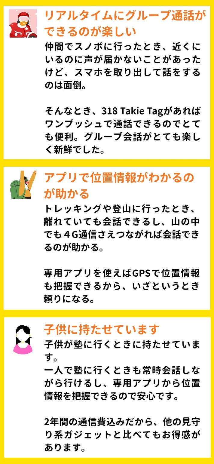 いつでも、気軽に会話をするためのツールとして、Talkie Tagをお使いください。
