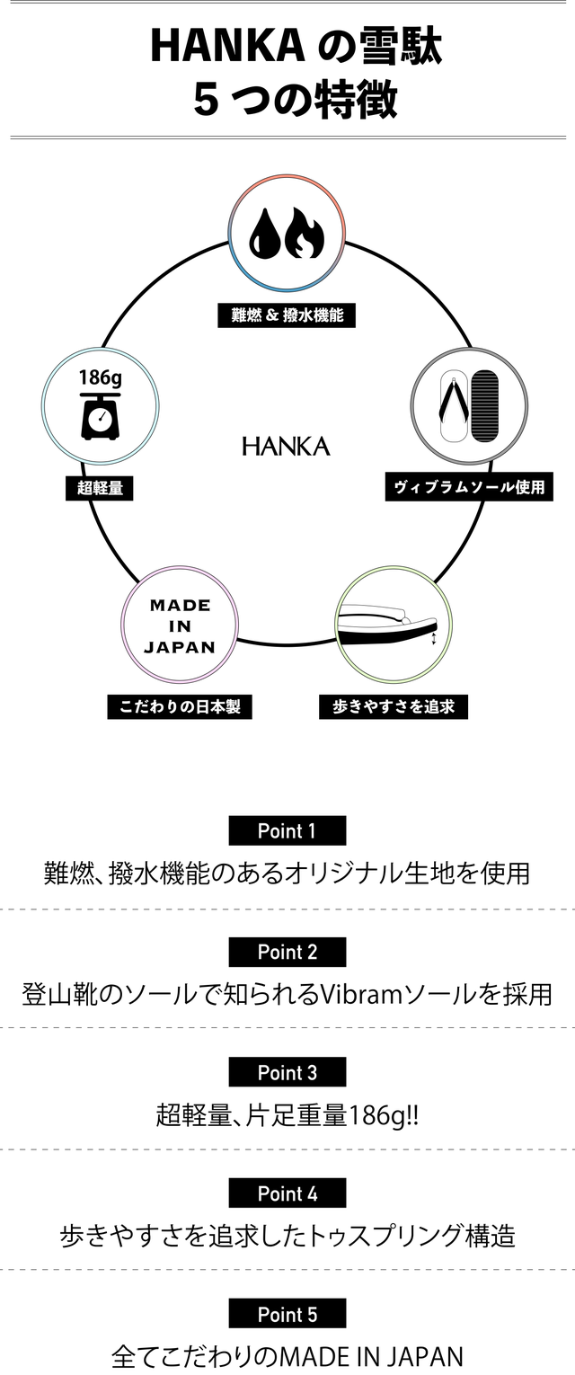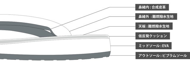 - 難燃、撥水機能のある素材を使用したアウトドア雪駄