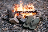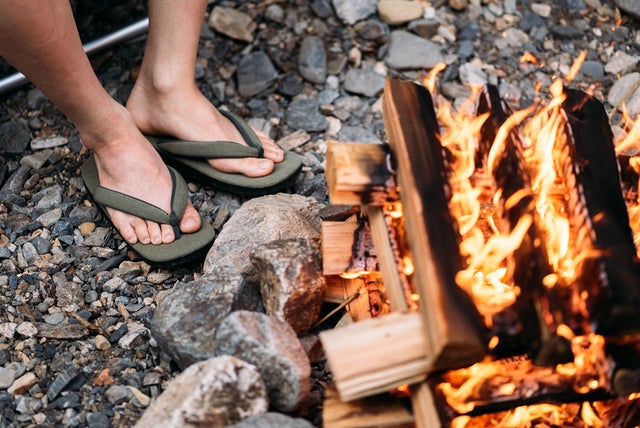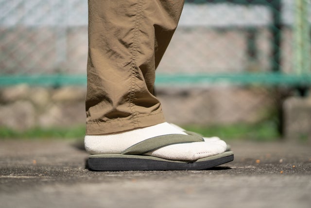 今回は難燃性のあるコーネックスと呼ばれる糸を使用した靴下も同時展開し、靴下と雪駄とのセットアップにより焚き火などのシーンでも火の粉を気にすることなくご使用でいただける形にしました。また、靴下との併用により肌寒い夜のキャンプでも快適に雪駄をご使用いただけます。