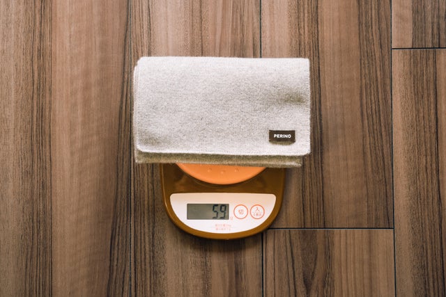 今回のコンパクトマフラーは超軽量、重量がなんと約65g(カラーにより差があります)となっています。色や個体により若干の差はありますが、大体65g前後となっています。