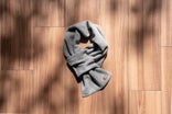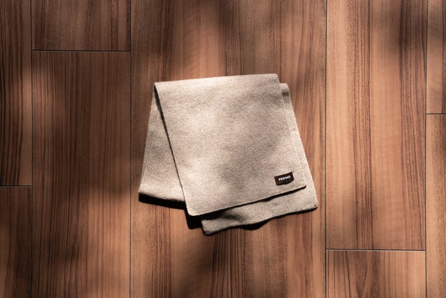 メリノウールが持つ特徴とポッサムが持つ特徴、そしてシルクの滑らかな肌触りが合わさることで機能的かつふんわりとした柔らかさを持ったコンパクトマフラーが出来上がりました。