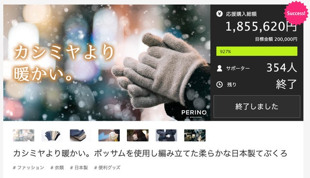 そして先日はポッサムの手袋のプロジェクトも実施させていただき、こちらもたくさんの方に応援購入いただきました。この場をお借りして改めて感謝いたします。ありがとうございます!