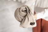 この製品に使用している糸はサステナビリティを考慮し、できるだけ自然や環境に配慮した方法で製造されています。またポッサムファーの本来の性質を壊さぬよう最低限の加工に留めています。ポッサム特有の細い毛が編地のところどころに見えますが、無理に引っ張ったりカットしないでください。使いはじめは摩擦などにより、若干短い繊維くずが落ちる場合がありますが、糸の特性上ご了承ください。繊維のナチュラルさを生かしたふっくらと素朴な風合いをおたのしみください。