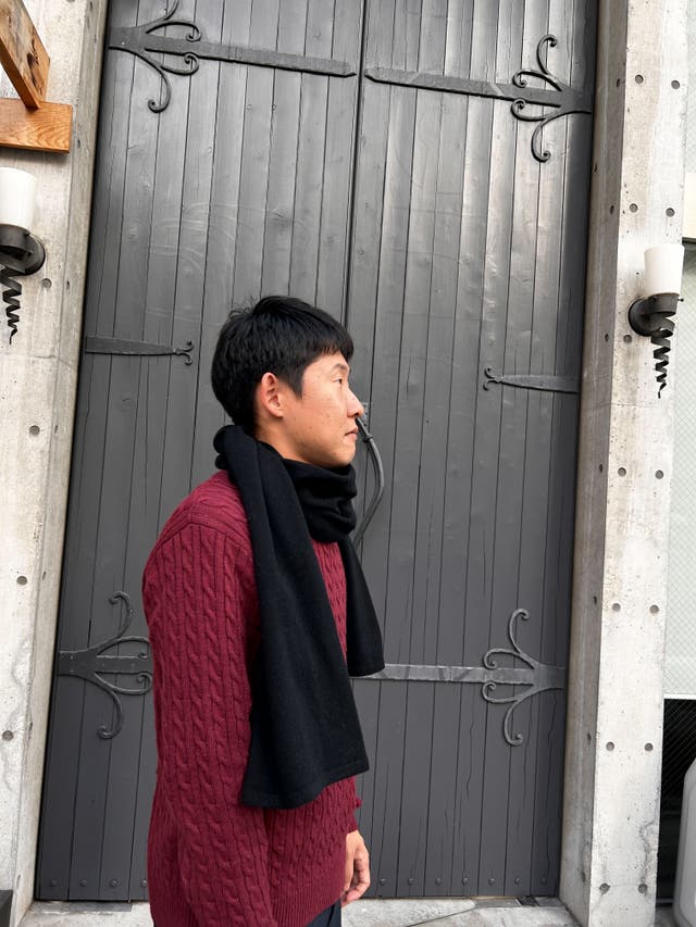 今回のマフラーは端を編みとじ(端がフラットに安定した状態)にしました。端がフラットなため カジュアルにも きちんとしたシーンにも合わせられる使いやすい仕様となっています。