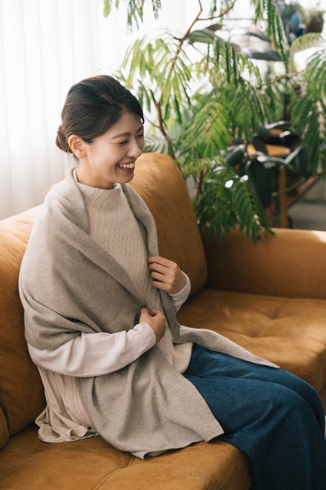 また、サイズに関しては一般的なマフラーくらいあるので室内でブランケットのように使用もでき汎用性の高い使い方ができます。