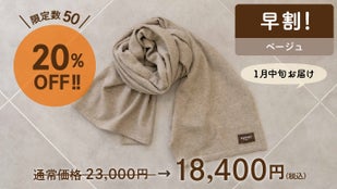 【超々早割35%OFF】マフラー・ベージュ【20枚限定・12月お届け】