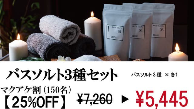 【マクアケ割25%OFF】先着150名様限定!バスソルト3種セット