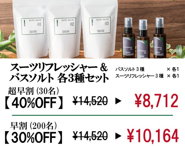 【早割30%OFF】先着200名様限定!リフレッシャー&バスソルト各3種セット