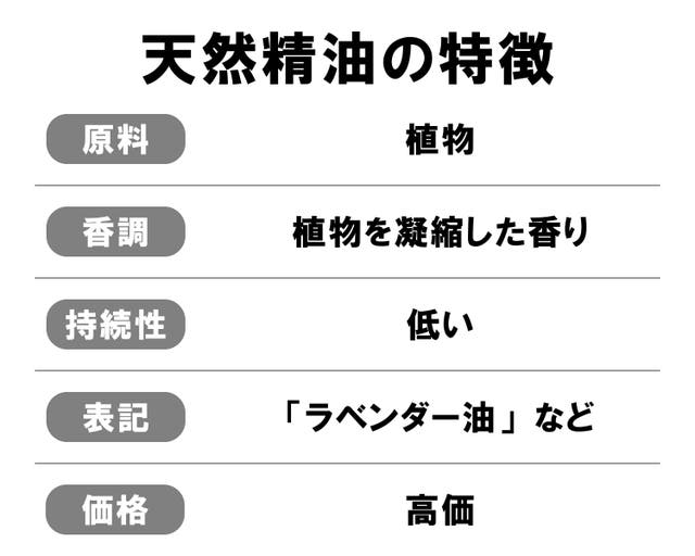A.天然精油は合成香料に比べ香りの強さや持続効果は低くなっております。ふわっと香りが広がり、香水のように強くは残りません。