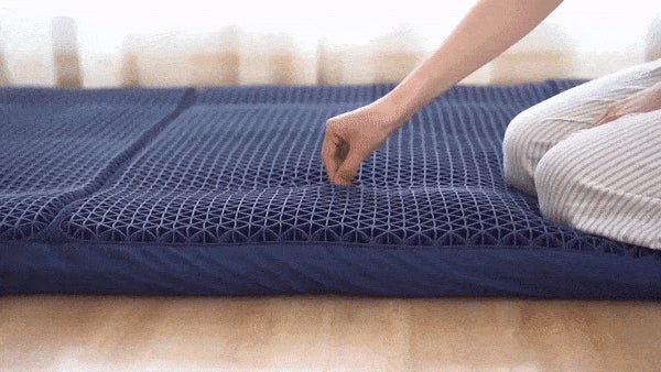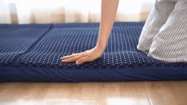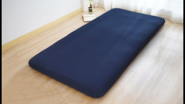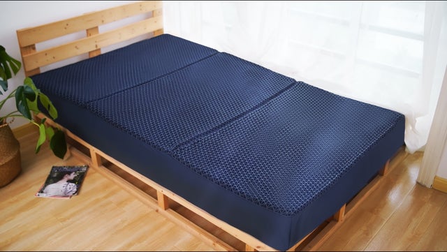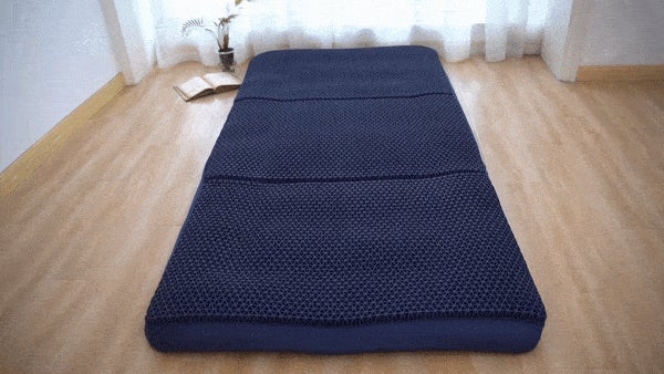 - 三つ折りサイズで収納可能。ベッドマットレスにも使えるように工夫しました。