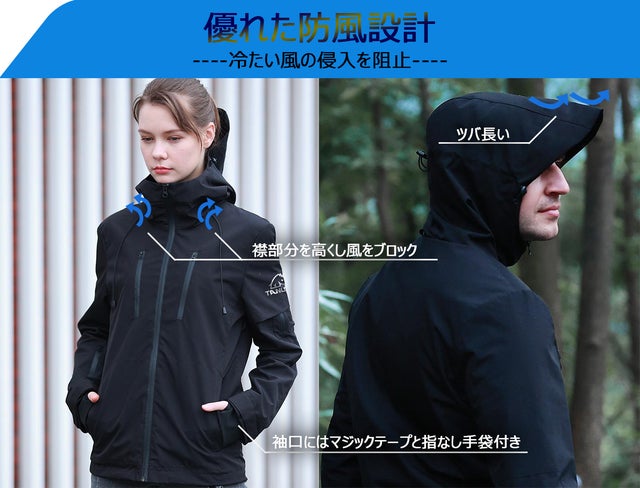 TANLOOKの電熱アウトドアジャケットでは、軽量で薄手の高品質素材を採用するので動きやすいです。