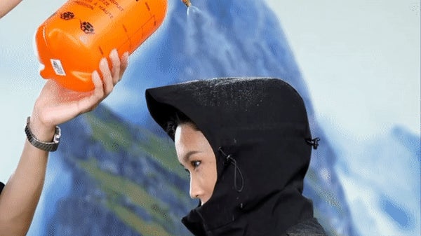 透湿撥水を実現するため、WEBER-TEXナノテクノロジー素材にePTFE膜を使用しています。ePTFE膜の表面には、雨や水滴よりも小さく、水蒸気の分子より大きな孔が開いているので水を弾き、中の水蒸気や湿気を外に逃がして蒸れを防ぐ機能を兼ね備えています。