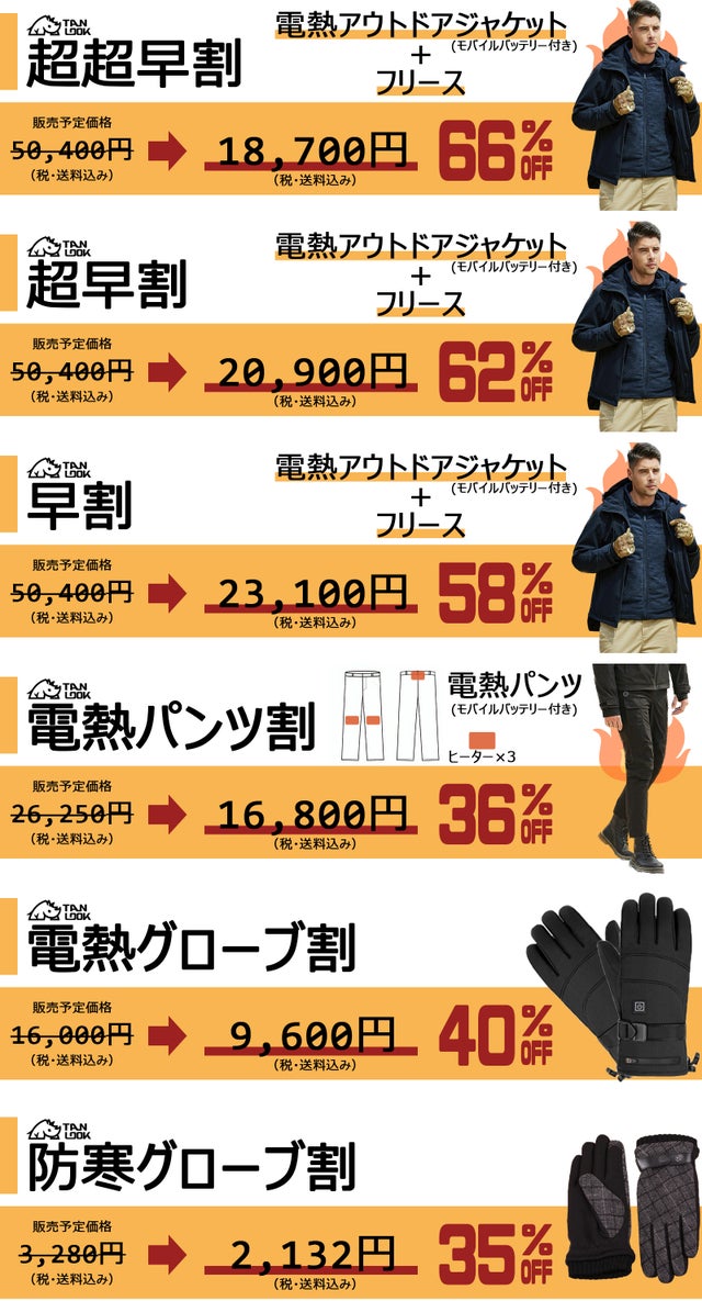 【超早割 58%OFF】電熱アウトドアジャケット+フリース【限定800名】