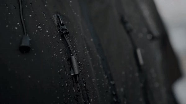ポケットには止水ファスナーを採用し、水の浸入を防ぎます。