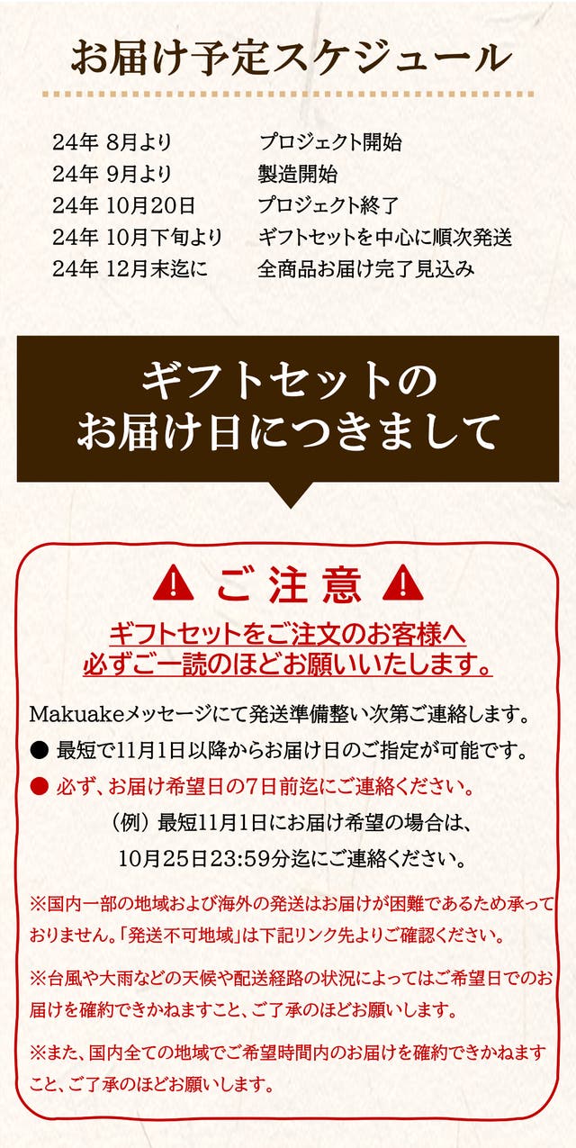 ※Makuakeメッセージにて、発送準備整い次第ご連絡します。