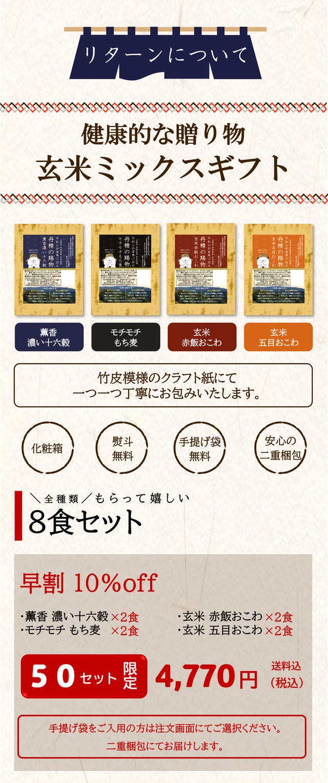 【早割10%OFF】丹精の賜物 玄米ミックスギフト8食セット