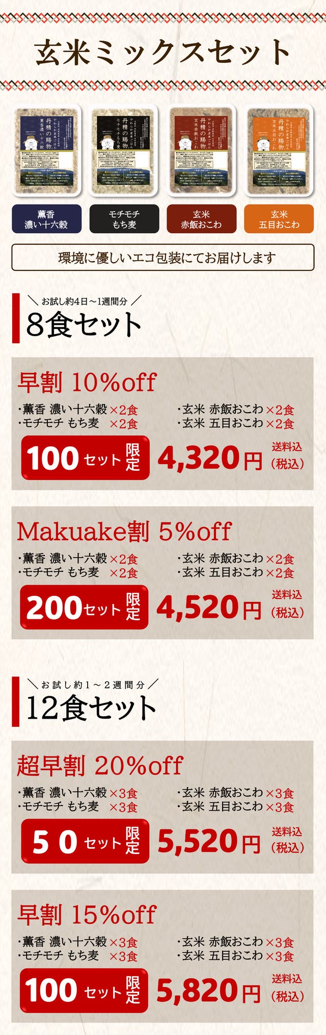 【Makuake割5%OFF】丹精の賜物 玄米ミックス8食セット