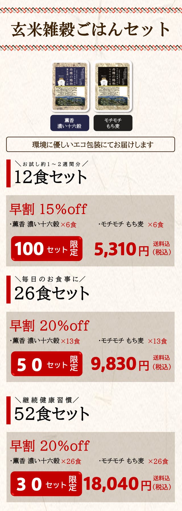 【早割20%OFF】丹精の賜物 玄米雑穀ごはん52食セット