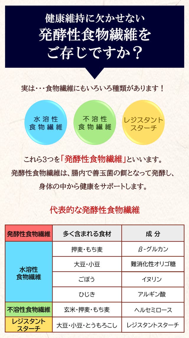 A. 酵素玄米ではございません。食品に含まれる酵素は70℃以上になると活性しないといわれております。弊社の商品は100℃以上で炊飯・無菌化を同時に行っていますので、酵素による健康効果はないと考えています。また、無菌状態のためごはんそのものは発酵していませんが、玄米や雑穀に多く含まれている「発酵性食物繊維」は腸内で善玉菌の餌となって発酵し、体の中から健康をサポートします。