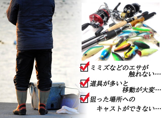 ■リール、エサ、竿、網・・・荷物が多いと収納場所も困る