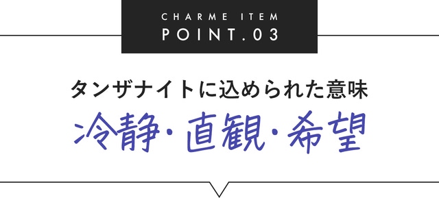 タンザナイトには、『冷静』『直観』『希望』という意味が込められいて、実は、恋愛において相手を深く知ることが出来る良縁の宝石としても知られているんです!